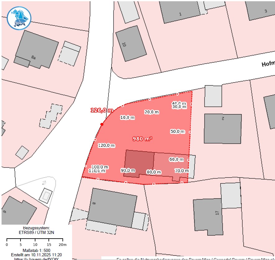 Wir bieten Ihnen ein ca. 980 m² großes Baugrundstück mit leichter Hanglage an. Das Grundstück ist bereits frei von Altlasten und sofort verfügbar.