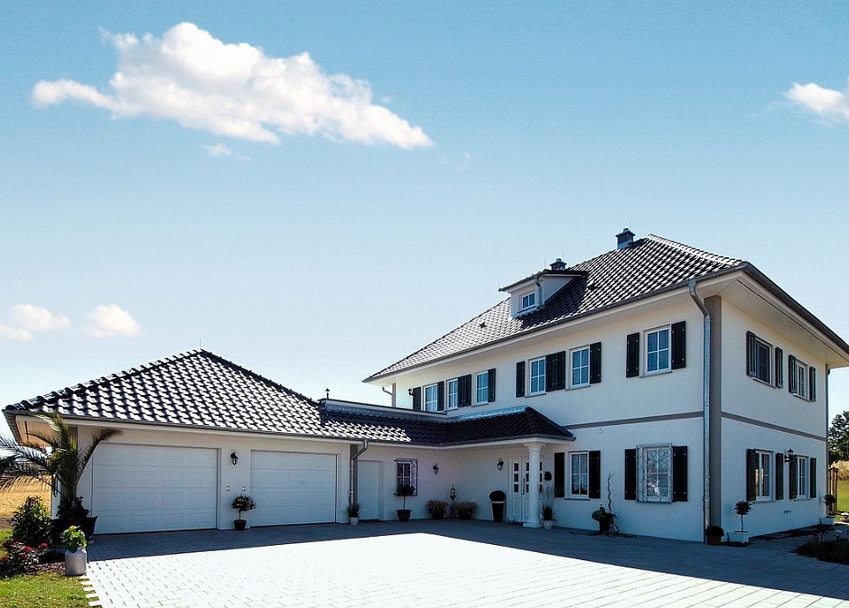Das in der Anzeige gezeigte Haus dient lediglich als Beispiel und verfügt über eine Wohnfläche von 250 m². Auf dem Grundstück haben Sie die Möglichkeit, die Wohnfläche deutlich zu erweitern oder zusätzlich ein bis zwei Gästehäuser errichten zu lassen.